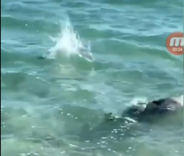Тюлененка закидали камнями в Актау Кадр видео из Instagram.