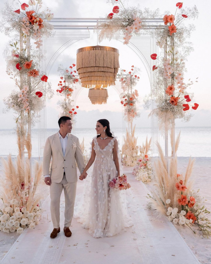 По информации украинского издания, бизнесмен оплатил "все прихоти" невесты, включая церемонию на Мальдивах и свадебное платье от ливанского дизайнера Жорджа Хобейка.