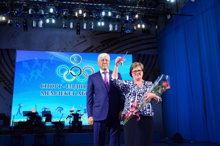 Еще одной высокой награды - нагрудного знака "За вклад в развитие физической культуры и спорта" были удостоены директора спортшкол для детей и подростков Жамбылского и Карасайского районов Бакберген Кайырлыбаев и Валерий Хациев.