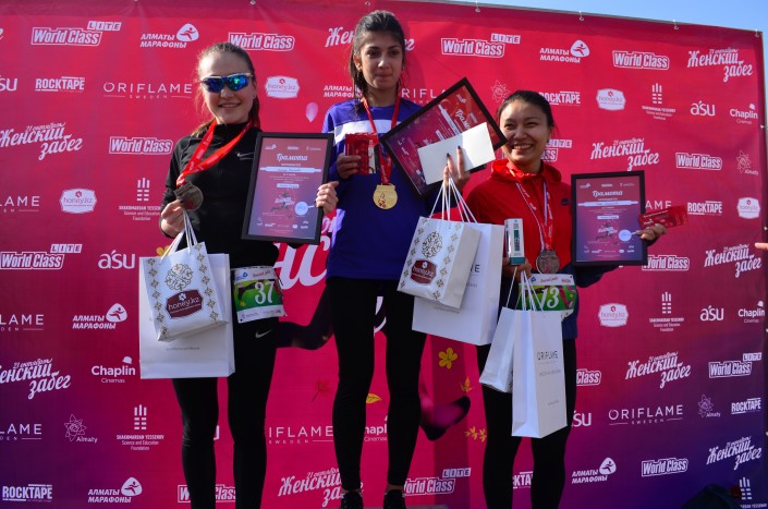 Участницы преодолели дистанцию в десять километров, пробежав два больших круга вдоль парка. Победительницами, занявшими первые места в своих возрастных категориях, стали: 16-30 лет – Риана Зейналова, 31-44 – Екатерина Шатная, старше 45 лет – Любовь Асанова. Участницы, занявшие с первого по третье места, получили призовые медали и подарки от партнеров, а на финише всем без исключения организаторы вручали эксклюзивные медали забега и розы. Почетной участницей стала биатлонистка Елена Хрусталева, призер Олимпиады и мастер спорта РК. Со всеми результатами можно ознакомиться на сайте almaty-marathon.kz.