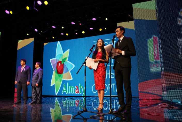 Перед началом им был представлен небольшой фильм, куда были включены самые яркие моменты и выступления наших спортсменов на различных чемпионатах, а также на Универсиаде-2017. Далее, со своим поздравлением и докладом выступил Абил Донбаев, отметивший достижения алматинских воспитанников и успешно реализуемые программы, такие как "Спорт в моем дворе" и "Спорттык Алматы", направленные на развитие массового спорта в мегаполисе и пропаганду здорового образа жизни среди подрастающего поколения.