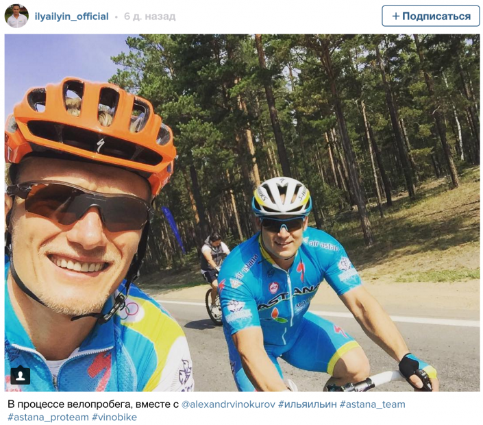 По признанию Ильина, активно заняться велосипедным спортом его вдохновил недавний визит на "Тур де Франс", где он изнутри познакомился с "велосипедной кухней", а также поболел за гонщиков "Астаны".
