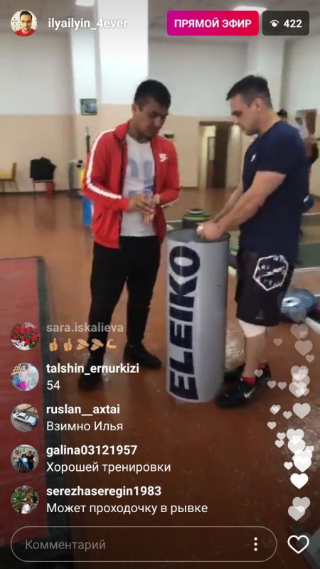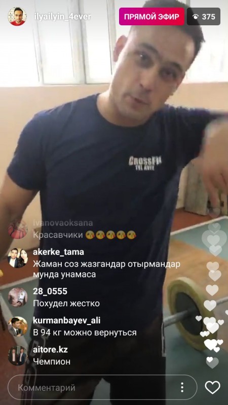 По его словам, сейчас он в Алматы и проводит тренировку в Республиканском спортивном колледже (РКС) на пересечении улиц Тимирязева и Байзакова. Вместе с ним в зале и другие спортсмены. Илья Ильин назвал сегодняшнюю тренировку простой разминкой. Правда, зрители сильно удивились физической форме тяжелоатлета - Ильин заметно похудел.