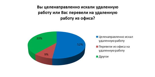 В своих вариантах ответов на вопрос "Вы целенаправленно искали удаленную работу или вас перевели на удаленную работу из офиса?" респонденты указали следующее: