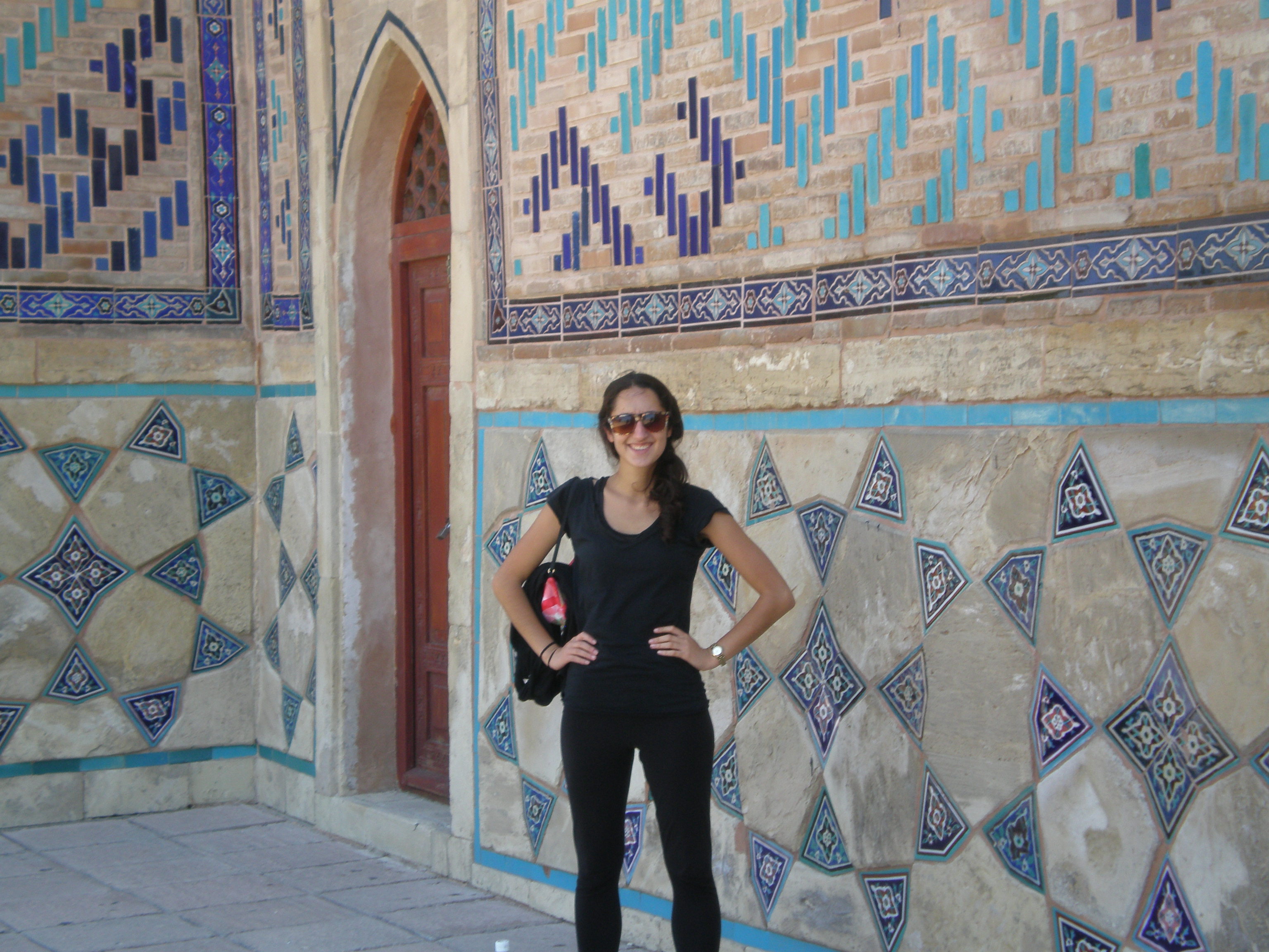 В 2011 году Дина Шолк посетила Казахстан в первый раз. На фото исследователь рядом с мавзолеем в Туркестане.