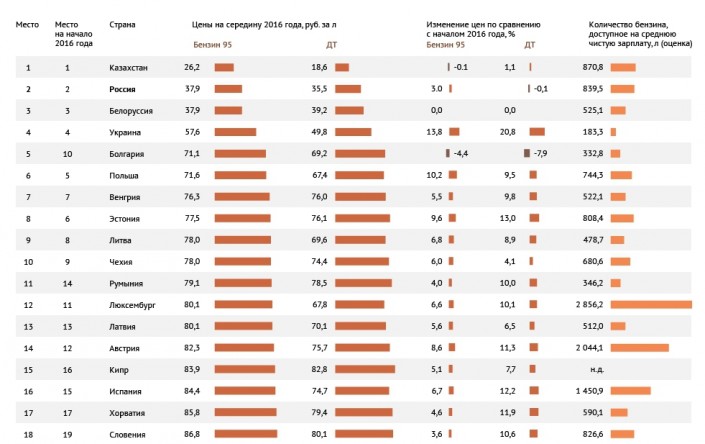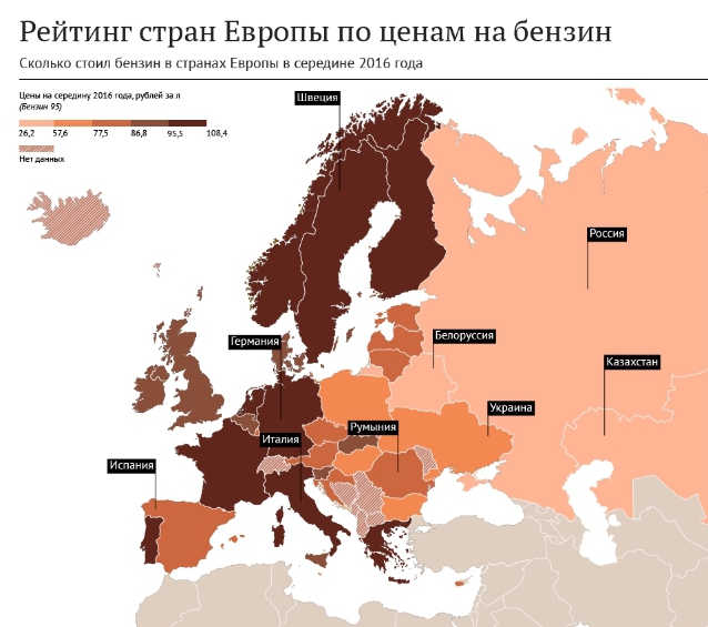 Что касается бензина, то как следует из недавно опубликованного исследования РИА "Рейтинг", самый дешевый бензин в Европе имеют возможность покупать жители Казахстана (140 тенге за литр АИ-95), России и других стран Таможенного союза, самая же высокая цена на топливо для автомобилистов сохраняется в Нидерландах (примерно 550 тенге за литр).