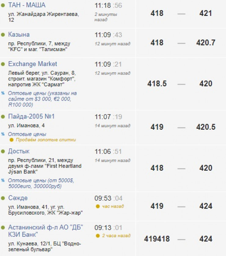 Отметим, что, по данным Kurs.kz, в обменниках Алматы и Нур-Султана доллар продают по 420-424 тенге.