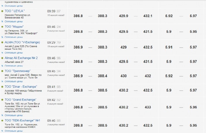 По данным Kurs.kz, стоимость доллара в обменниках варьируется от 387,1 до 388,5 тенге.