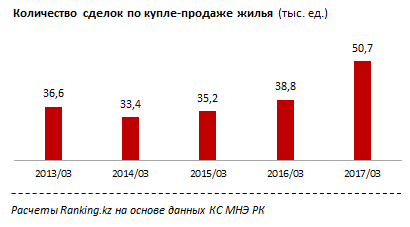 За три месяца с начала года на рынке купли-продажи жилья было заключено 50,7 тысячи сделок, что на 31 процент превышает уровень прошлого года. Об этом сообщают аналитики Ranking.kz.