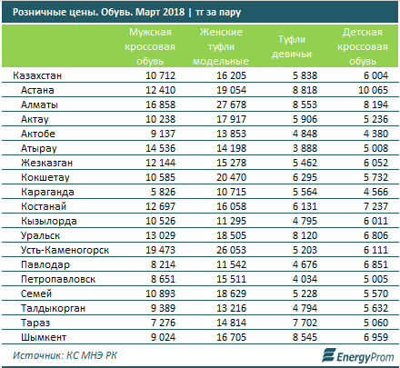 Производство отечественной обуви снижается в то время, как цены на обувную продукцию растут в магазинах и на базарах. Об этом говорится в исследовании Energyprom.kz.