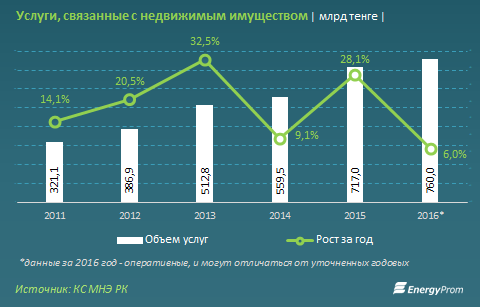 Только за месяц было заключено 19,5 тысячи сделок купли-продажи недвижимости, что на 26 процентов больше, чем год назад. Всего за первое полугодие объем услуг, связанных с недвижимым имуществом, достиг 390,35 миллиарда тенге. Это на 7,8 процента больше, чем в аналогичном периоде прошлого года.