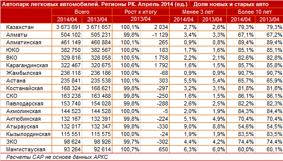 В целом по Казахстану зарегистрирована 101 тысяча свежих легковых машин (доля 2,7 процента) при общем парке в 3,7 миллиона авто. Не новые авто - старше десяти лет - по-прежнему заполоняют казахстанский рынок. Доля таких автомобилей составляет 79,3 процента от всего рынка.