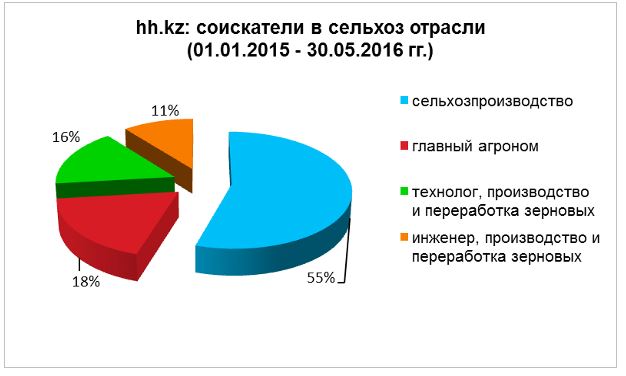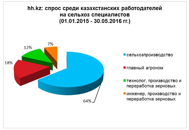 По информации аналитиков, с 1 января 2015 года по 30 мая 2016 года на их сайте в профессиональной области "производство" (с аграрным уклоном) было опубликовано всего 665 вакансий. Подавляющее большинство предложений пришлось на сельхозпроизводство - 64 процента от общего числа вакансий в исследуемой профессиональной области, 18 процентов - на главных агрономов. В каждой восьмой вакансии требовался технолог (12 процентов), а в каждой 14-й - инженер производства и переработки зерновых.