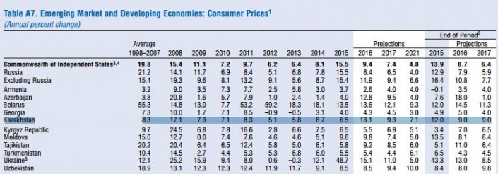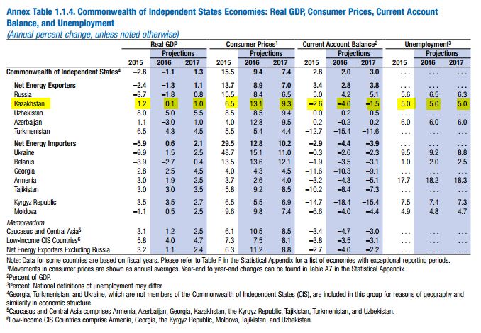 Согласно отчету, в 2017 году рост экономики Казахстана составит 1 процент. При этом инфляция в следующем году составит 9,3 процента.