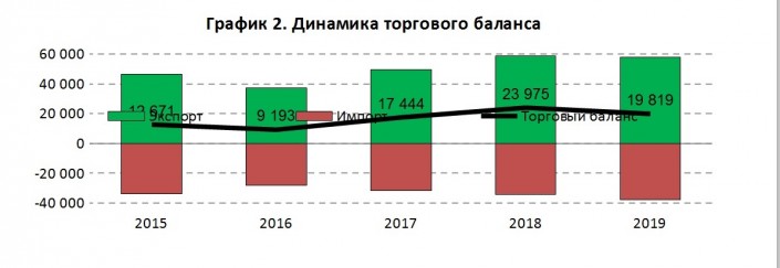 В 2018 году опережающий темп прироста экспорта над приростом импорта товаров будет способствовать увеличению положительного сальдо торгового баланса. Вместе с тем в 2019 году более низкие цены на нефть и увеличение объемов импорта товаров для реализации крупных инфраструктурных проектов в нефтегазовой отрасли приведут к снижению торгового профицита (график 2).