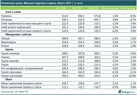 Цены на крупы практически не изменились, кроме гречки, которая вновь заметно подешевела: -2,4 процента за месяц.