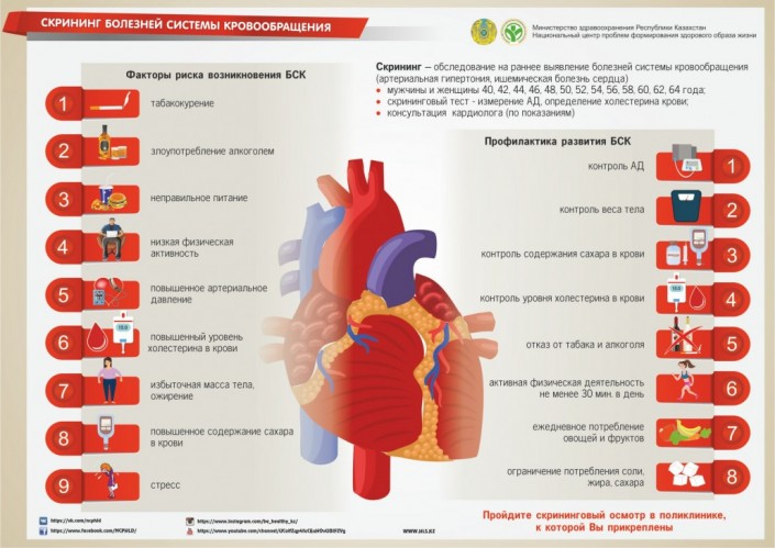 Немного статистики. Знаете ли вы, что от сердечно-сосудистых заболеваний ежегодно в мире умирает более 17 миллионов человек? Большое количество приходится на возраст до 70 лет, отнимая жизни людей в самые продуктивные годы. В Казахстане отмечается постепенное снижение смертности, к примеру, в 2017 году от болезней системы кровообращения показатель смертности населения составил почти 175 на 100 тысяч человек, тогда как в 2016 году он был равен 179 на 100 тысяч человек. Большое значение в этом вопросе имеет раннее выявление заболевания во время скрининговых обследований.