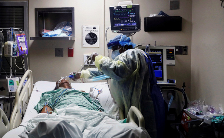 Жасанды тыныс алдыру аппаратына қосылған науқас. © Reuters