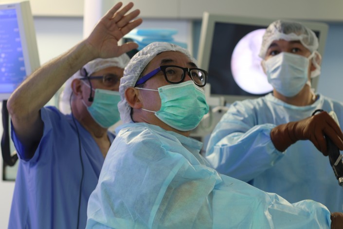 - Обычно да, мы можем вылечить связки путем их реконструкции, как сделали сегодня,  но иногда, вместо того чтобы выполнять операции на медиальном мениске,  в области коленной чашки, мы теперь пытаемся усилить терапию, применяя биотехнологии, методом фактора роста клеток  с помощью PRP (обогащенной тромбоцитами плазмой). То есть мы берем образец крови у пациента, помещаем его в центрифугу, где выделяется плазма, и потом в качестве инъекции вводим  в тело.