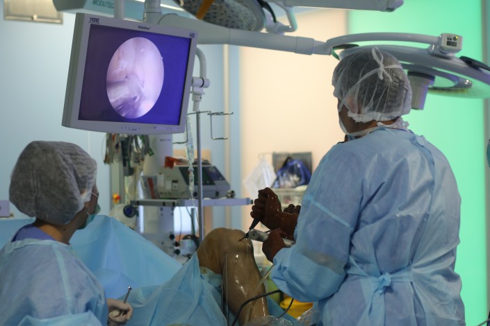 "Для крестообразных связок существует множество видов операций, - объясняет нам после доктор, - мы можем использовать аутологичную ткань, то есть ткань самого пациента, взятую, например, в длинной малоберцовой мышце ноги, расположенной в голени, ткани в надколеннике, мышце подколенного сухожилия – в ноге видов тканей множество. Обычно в своей практике я беру ткань из коленной чашки – вырезаю  часть ткани, расположенной в центре надколенника, и часть ткани в большеберцовой кости. Почему? Потому что ткани этих мышц, в особенности у спортсменов, очень сильные, крепкие, упругие, футболисты делают множество упражнений – бег, прыжки. Я предпочитаю эту технику, но она очень сложная в выполнении. Она требует очень точной и аккуратной работы от хирурга. Если допустить небольшую погрешность, то результат для спортсмена будет очень плохим".
