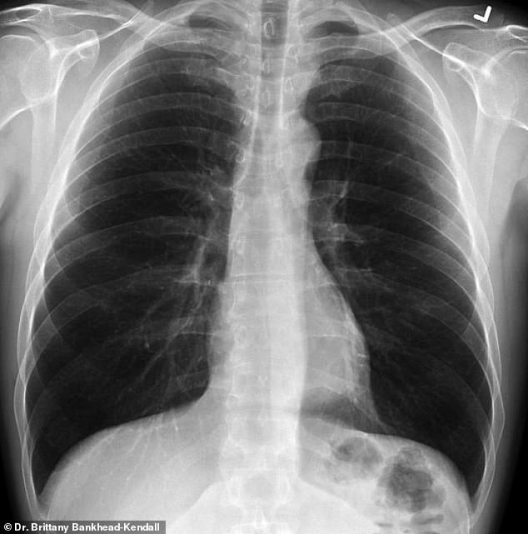 Доцент Центра медицинских наук Техасского технологического университета, доктор Бриттани Бэнкхед-Кендалл показала три рентгеновских снимка легких: здорового человека, курильщика и пациента с коронавирусом.