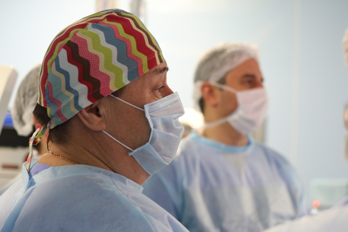 Радикальная простатэктомия – это операция, которую проводят пациентам с раком простаты. В операционной Президентской клиники за этой довольно распространенной манипуляцией теперь следят в новом разрешении. Операция проходит с помощью 3D- и 4K-визуализации: лапароскопические инструменты, которые вводят в область живота пациента, на конце оснащены камерой с более четкими визуальными возможностями. На большом экране – документальное кино, которое идет в режиме реального времени.