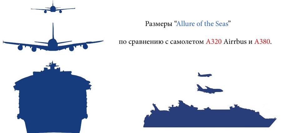 Класс круизных кораблей Oasis включает два судна-близнеца, и оба являются крупнейшими представителями своего типа в мире. Правда, Allure of the Seas все же на 50 миллиметров длиннее, чем Oasis in the Seas, поэтому именно он занимает восьмую позицию. Максимальное число пассажиров, какое этот лайнер способен нести, составляет 6296 человек, а экипажа - 2384. Чтобы перечислить все предлагаемые на борту развлечения, потребуется написать отдельную статью - это настоящий плавучий город: от ледового катка, поля для гольфа и множества магазинов и баров до целого парка с экзотическими деревьями и другими необычными растениями.