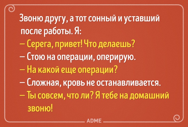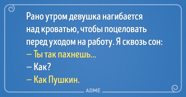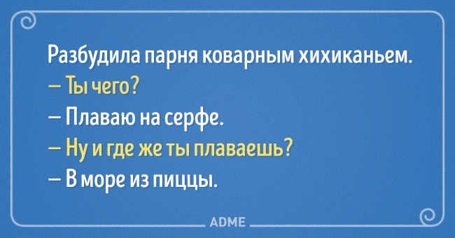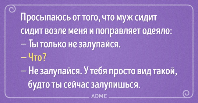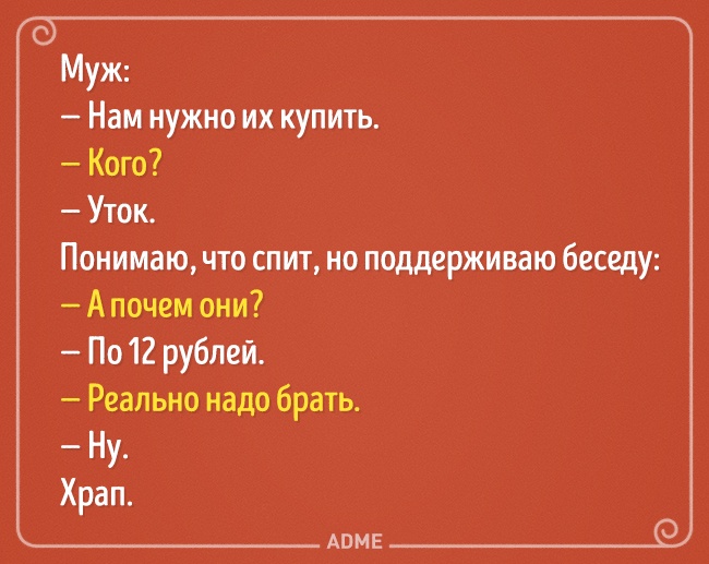 Во сне разговаривают многие, и очень часто люди выдают настолько сногсшибательные фразы, что просто диву даешься. Причем, что характерно, утром сказанное никто не помнит. Портал AdMe.ru на основе историй людей, которые живут бок о бок с такими собеседниками, составил список из 12 наиболее интересных фраз.