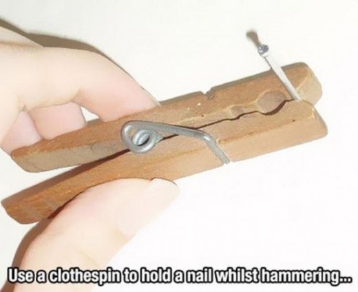 Ваш сын никогда не услышит от вас ни одного бранного слова, если при забивании гвоздей вы воспользуетесь прищепкой.