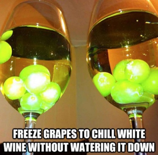 Быстро охладить вино можно с помощью кубиков льда, но тогда при таянии они будут портить его вкус. Поэтому лучше заморозьте виноградины и кидайте их в бокалы для охлаждения. Кроме всего прочего, это еще и красиво.