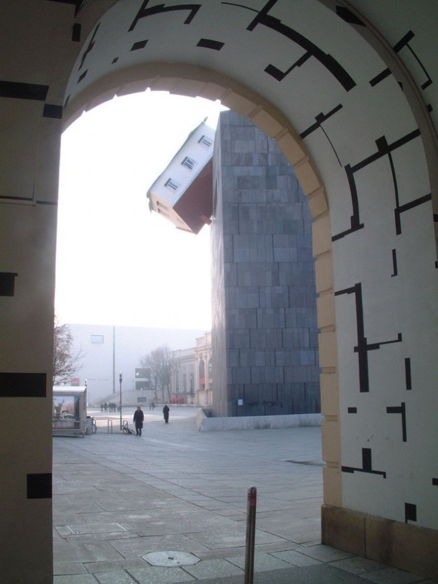 На польском языке эта архитектурная диковинка так и называется: "Кривой домик", что вполне подходит для здания, словно бы отраженного в кривом зеркале.