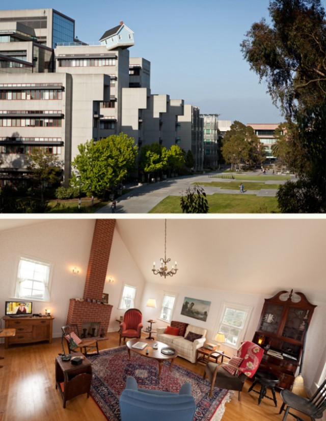 Этот дом (хотя технически он является скульптурой) можно найти примостившимся на крыше здания Якобс Холл, принадлежащего университету Калифорнии.