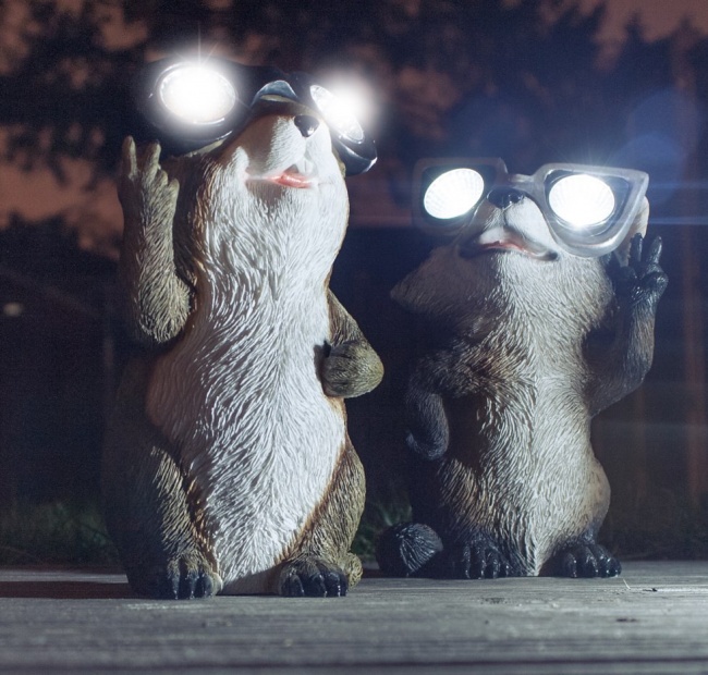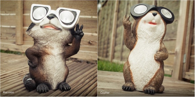 Фонари в виде веселых енота и бурундука оживят пространство сада. Они экономичны, поскольку работают на солнечных батареях.