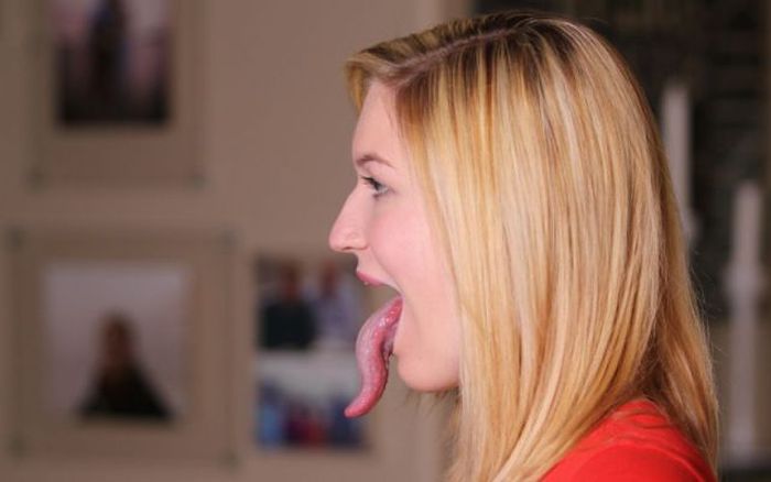 Эта часть тела девушки превышает невероятных 10 сантиметров (4 дюйма), предоставляя ей уникальную возможность полизать не только свой нос, подбородок и локоть, но и глаза.