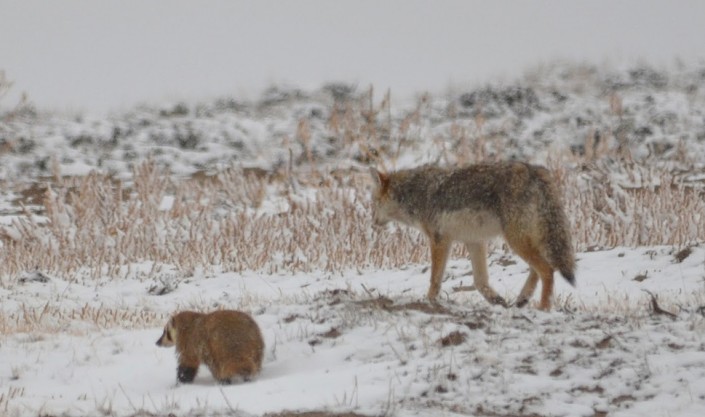 Койоты и американские барсуки - большие любители вместе поохотиться. Их цель - нажористые луговые собачки, которые, издали завидев смертоносную парочку, забиваются в норы. Барсук забивается следом и выгоняет собачку прямо на койота. Собачке конец.