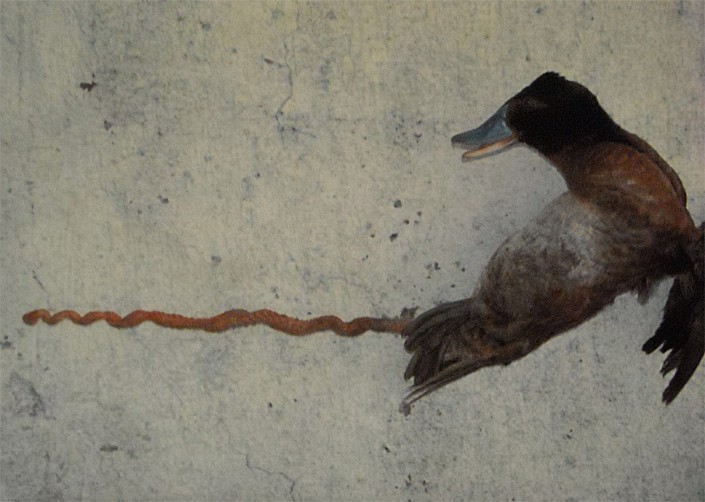 Вообще у птиц нет пениса (да-да, даже у самцов!). Они размножаются так: самец плотно прижимает свою клоаку к клоаке самки и впрыскивает в нее порцию спермы. Исключение - аргентинская савка.