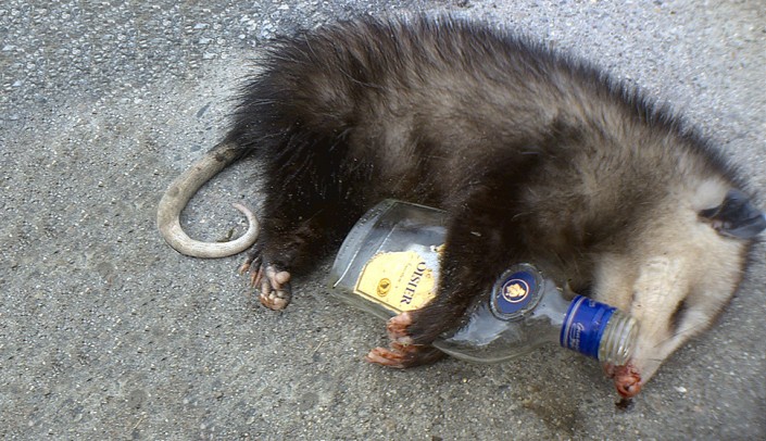 Станиславский никогда не крикнул бы "Не верю!" опоссуму, что притворился мертвым. Когда опоссум пугается, он ложится на бок, закрывает глаза, из носа у него течет кровь, и вообще он виртуозно играет мертвяка. А когда опасность, сфотографировав его с бутылкой, уходит, опоссум волшебным образом оживает. В английском даже есть выражение playing possum - "прикинуться никаким".