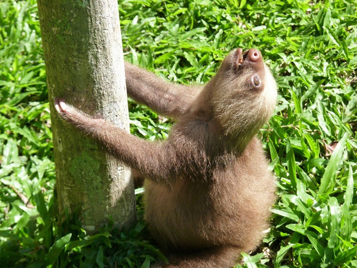Ленивец предпочитает без дела на землю не спускаться: там много неприятных зверей, которые так и норовят его съесть. Но раз в две недели он все-таки вальяжно сползает по стволу, чтобы, чего уж там, покакать. Почему не сделать это на дереве? Биологи не понимают.