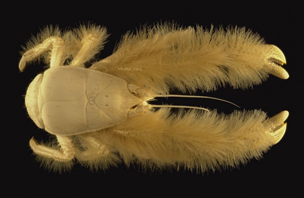 Мех на клешнях - это густые длинные щетинки.