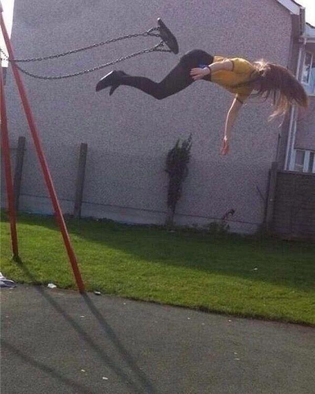 За секунду до того, как она решила больше никогда не садиться на качели.
