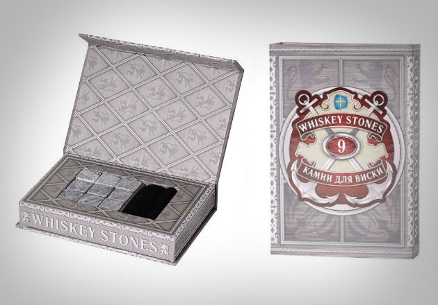 Еще одни камни для виски, на этот раз серого цвета и в серой же упаковке. Девять ровных каменных кубиков держатся в отлично оформленной коробке с магнитами.