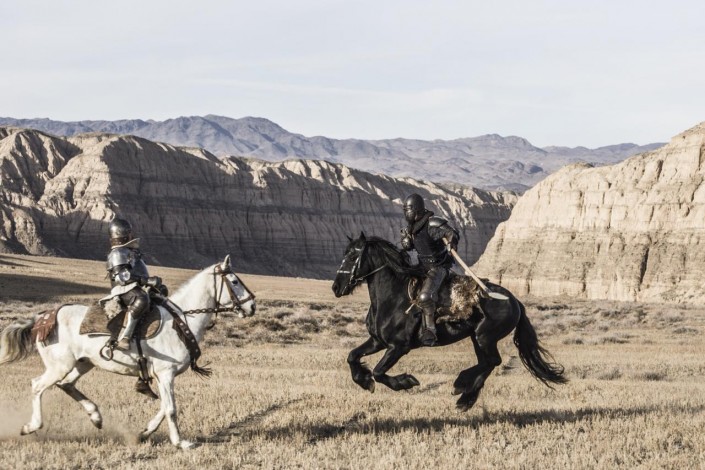 Съемки проходили в течение двух дней в середине декабря минувшего года на Чарынском, Лунном каньонах в Алматинской области и в Бутаковском ущелье, что близ Алматы. "На нас были рыцарские железные доспехи, примерно по 40 килограммов каждый. При этом обувь была довольно скользкая. Машины на Бутаковку не поднимались, поэтому пришлось подниматься пешком. И были случаи, когда мы скользили, падали. Но, держась за руки, цепочкой, потихоньку поднимались наверх. Причем падали не раз, в том числе и Йен Битти", - рассказывает, улыбаясь, Мурат Елькенов.