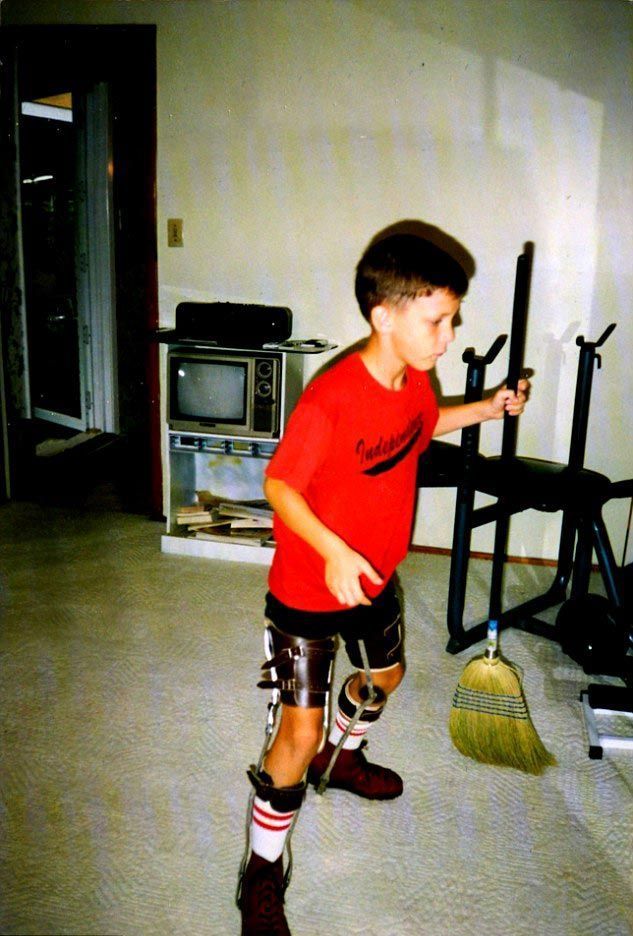 Майкл Коннер Хамфрис со специальными скобами на ногах, во время съемок фильма.