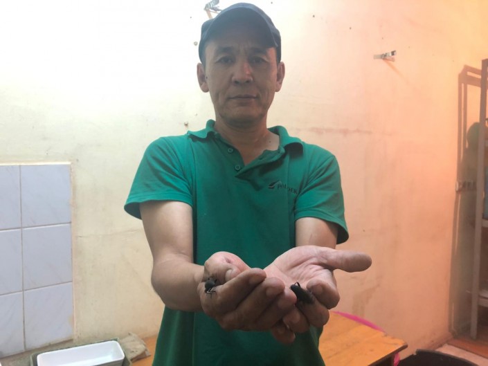 "Яйца важно вовремя отделить от взрослых, потому что жучки их съедают. После всего длительного процесса часть жучков, червей и личинок становится пищей для животных, остальные остаются на разведение. Это самый смак для сурикатов, ежиков и ящериц", - поясняет Исраил Исаев.