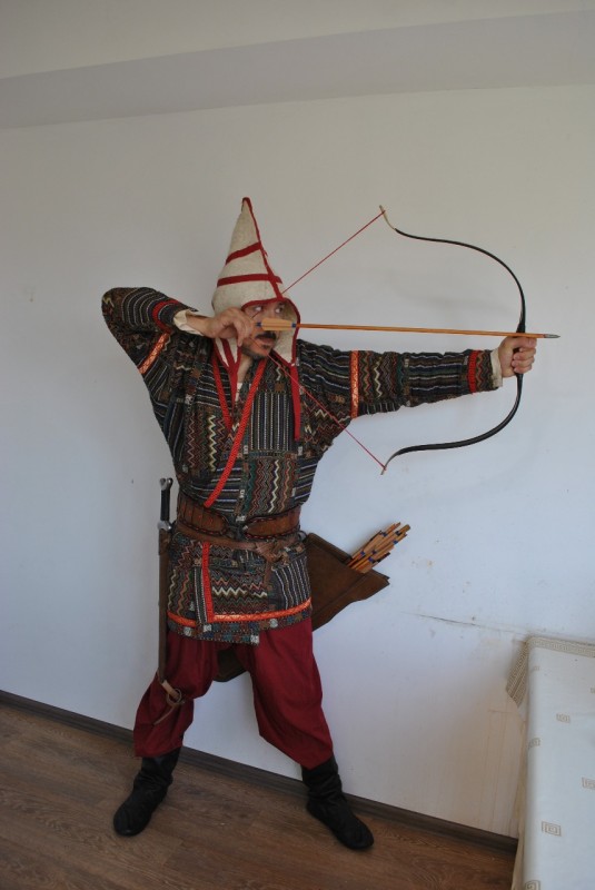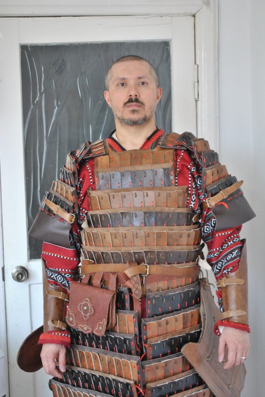 "Я понял, что у нас мало мастеров реконструкции. В этом сегменте мы отстаем от ближнего зарубежья на 20-30 лет, а от стран Запада - на 50-60 лет. Тогда я на себе решил испытать эту машину времени и стал создавать доспехи разных исторических эпох. К этому времени я уже умел работать с деревом, это помогло при изготовлении луков и стрел. Потом появилась необходимость работать с кожей, я освоил и этот метод. С супругой Асылгуль Байдаралиной научились шить правильную историческую одежду - шаровары, рубахи, халаты, головные уборы, обувь. Сейчас приходится уже осваивать и металл", - рассказывает Данияр.