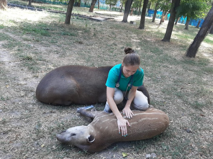 "Обожаю тапиров, потому что это очень ласковые и отзывчивые животные. Они всегда рады тебя видеть. Вообще, они неприхотливые животные. Но тапиров нужно разминать, они должны много двигаться, чтобы не было проблем с лишним весом. А массаж улучшает циркуляцию крови. Тапиров я массирую, в частности, в области грудной клетки, потому что эти животные любят много купаться и им надо помочь избавиться от застоев в легких", - уточнила Алина.