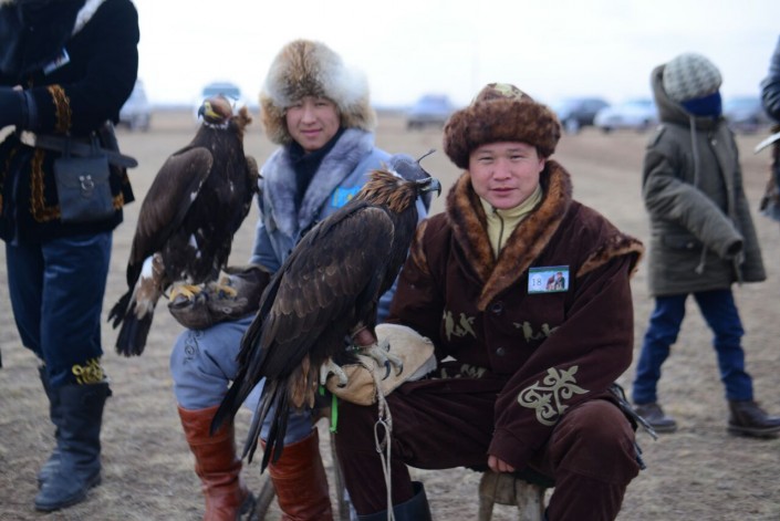 "Беркуты передаются нам из поколения в поколение. В нашей семье существует традиция с малых лет обучать детей охоте с беркутами. Лично я начинал потихоньку: гладил их, поднимал, а потом появилась какая-то неразрывная связь. Они очень злопамятные, поэтому мы никогда их не ругаем, всегда бережно относимся. Беркуты - очень сильные птицы. От них не сбежать зайцам, лисам, шакалам и волкам. Едят эти птицы только мясо", - говорит Аян.