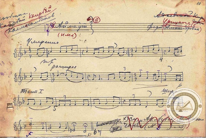 Нотные записи песенных напевов Адаевского уезда. Фото предоставлены Центральным Государственным архивом Республики Казахстан.