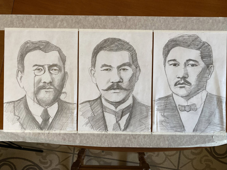 Идея написать совместный портрет основателей партии "Алаш" к девушке давно пришла в голову, но она не знала, как ее реализовать.