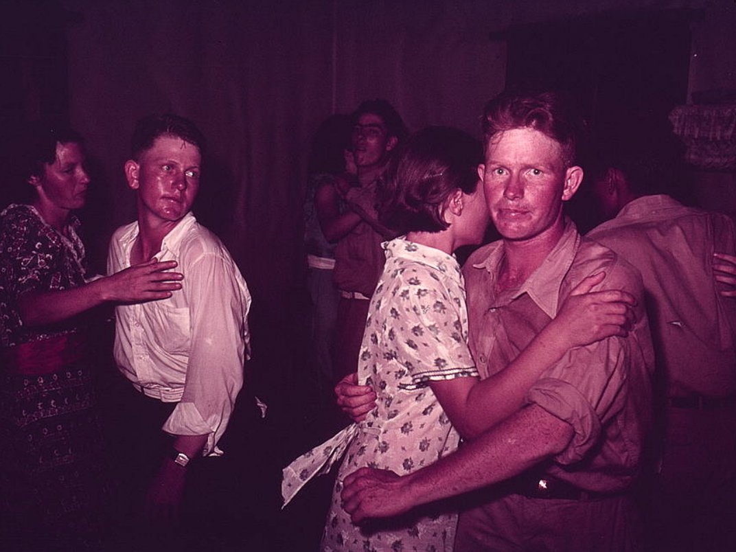 Танцующие пары, округ Макинтош, штат Оклахома, 1939 или 1940 год. Фотограф Ли Рассел (1903-1986)
